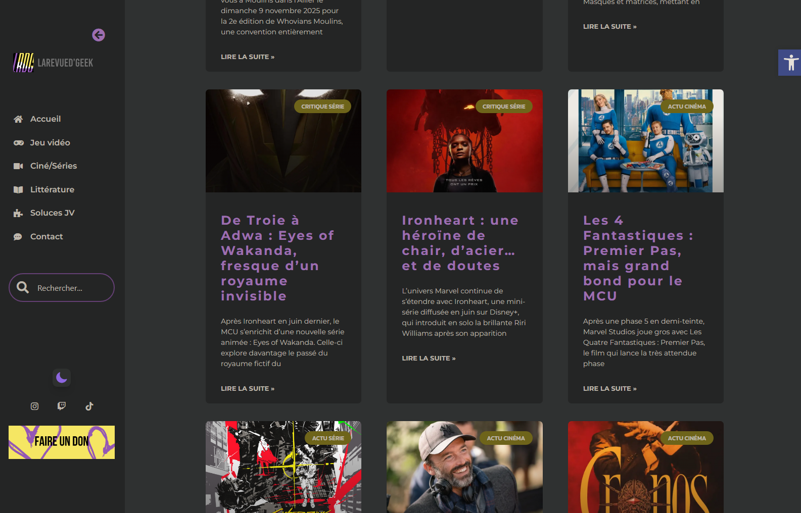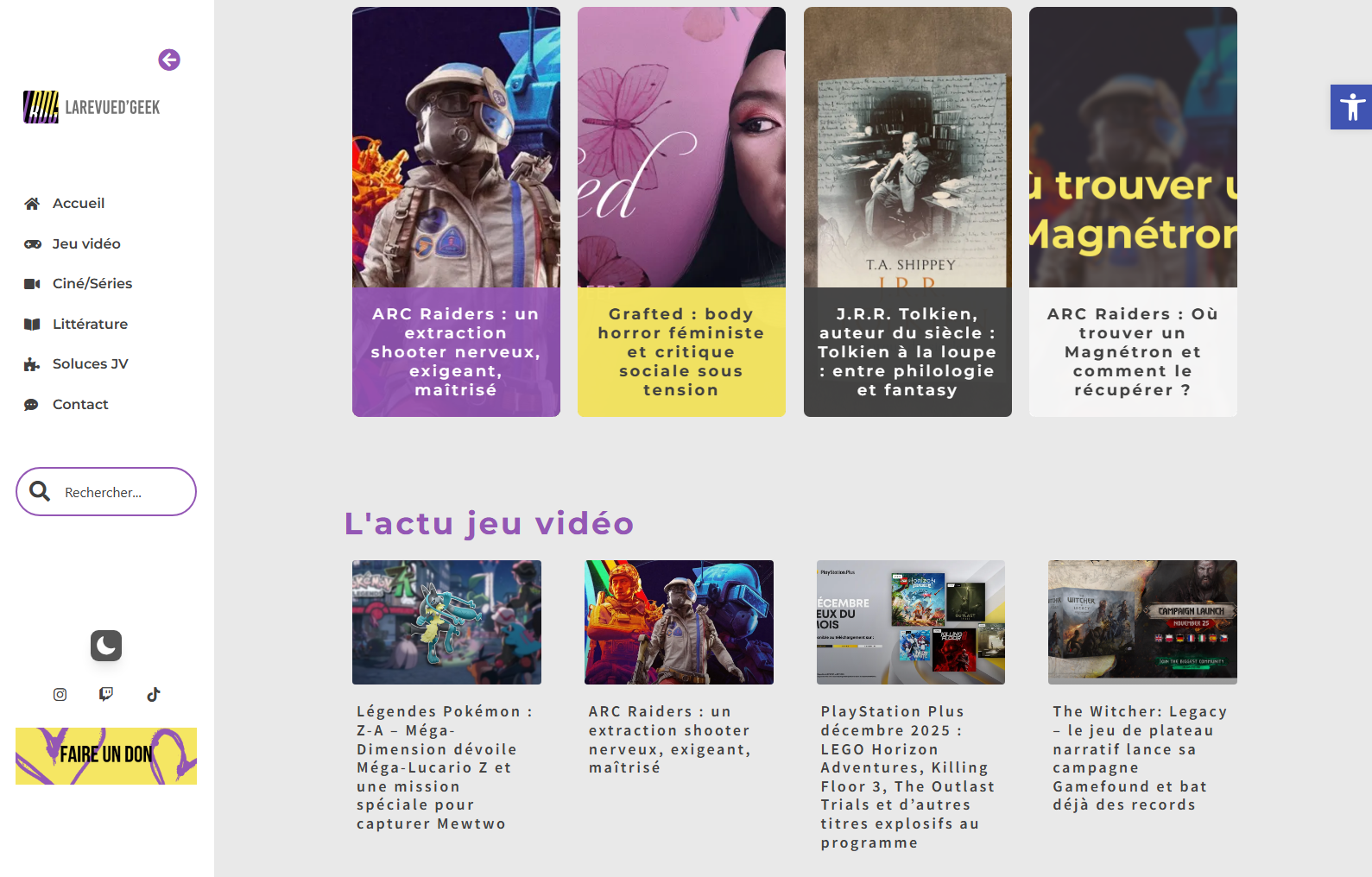 Le site permet la publication d’articles, de tests, critiques, dossiers et guides, avec une hiérarchisation visuelle claire.
