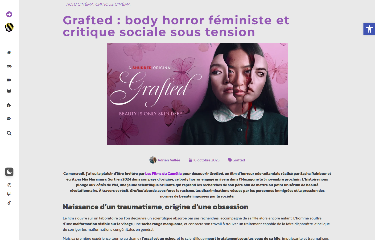Le design met en avant les catégories phares (Gaming, Cinéma, Culture Web, Tests…) tout en offrant une mise en page magazine moderne et aérée.