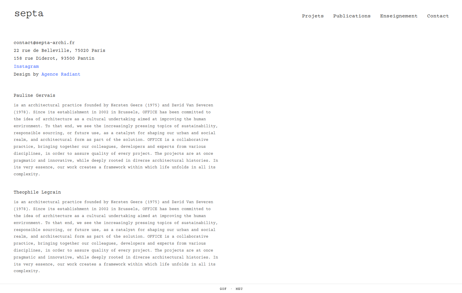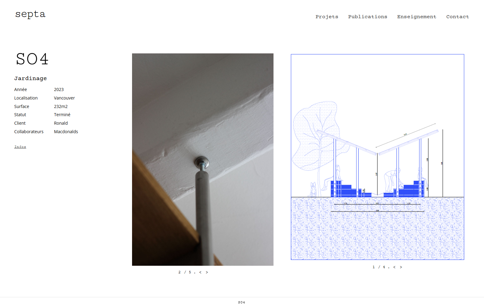 Une interface pensée pour la lisibilité et l’expérience utilisateur permet aux visiteurs d’explorer facilement les projets, les domaines d’intervention et les valeurs de l’agence. Le résultat : un site sobre, esthétique et professionnel, aligné avec la vision architecturale de Septa-Archi.